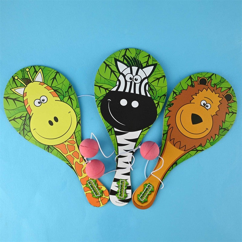 Denna söta träpaddel med matchande boll i djungeldesign är en underbar leksak som utvecklar barns grovmotorik och hand-ögonkoordination. Den robusta träkonstruktionen gör den perfekt för utomhuslek samtidigt som den lockar fram fantasifulla lekar och rörelseglädje. En pedagogisk leksak som kombinerar fysisk aktivitet med kreativ lek.