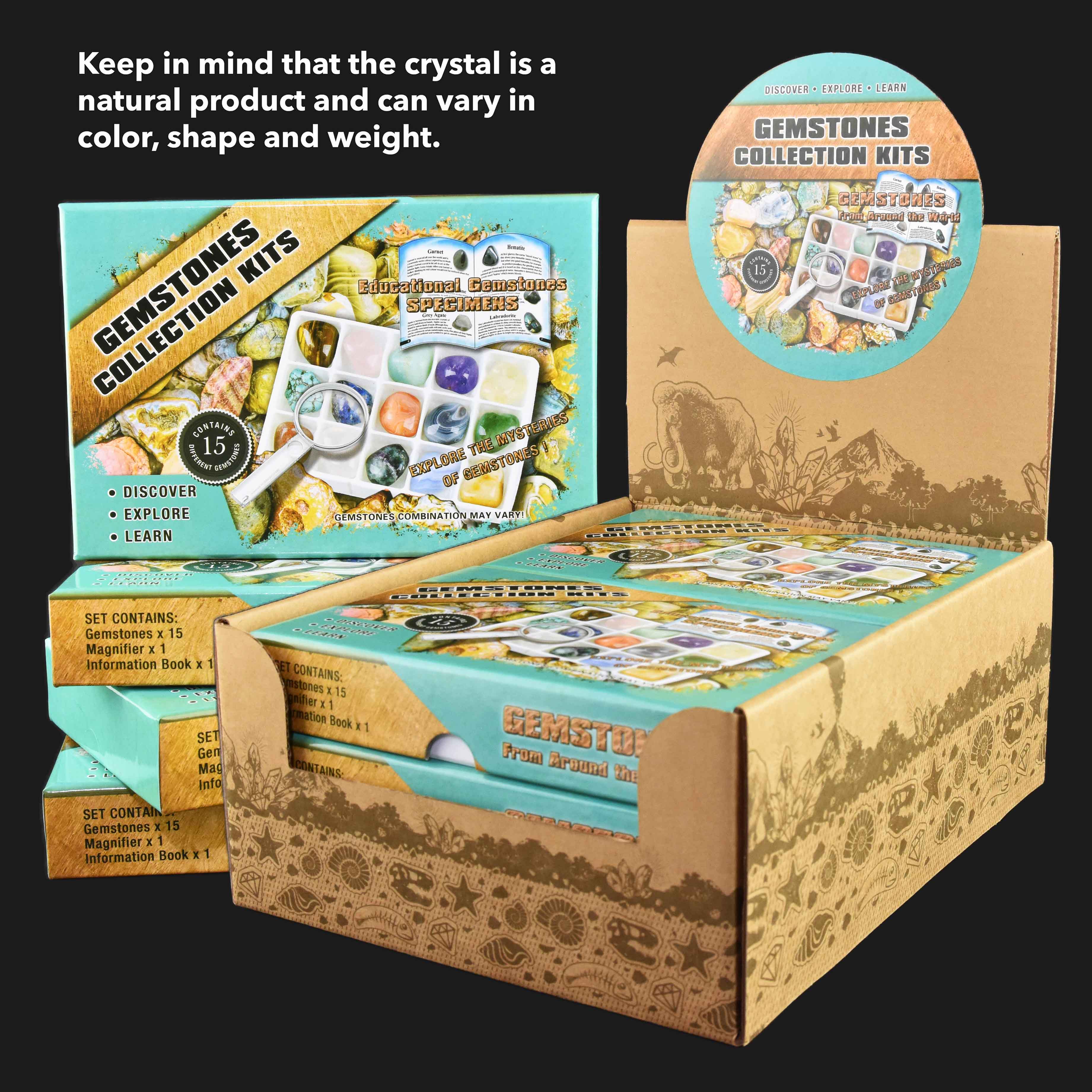 Denna fascinerande ädelstenssamling öppnar en värld av geologiskt utforskande för nyfikna barn. Varje unik sten med sina egna färger och mönster blir en portal till jordens historia och skapar en lärorik upplevelse som kombinerar naturvetenskap med kreativ lek. Perfekt för att stimulera både fantasi och kunskap om mineraler och geologi.