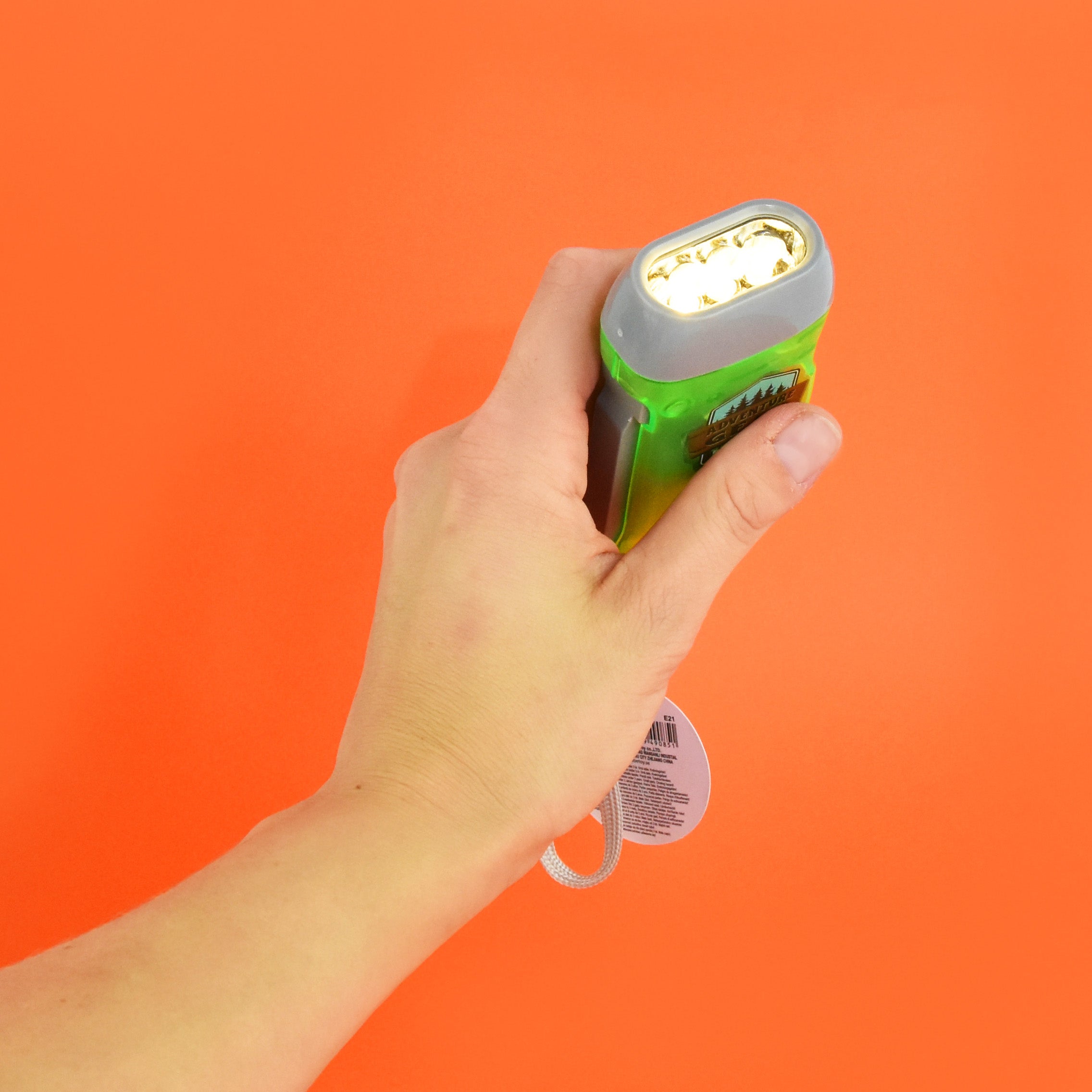 Genom att själv skapa strömmen lär sig barn om energiomvandling på ett lekfullt sätt. Ficklampans robusta design tål äventyr i både regn och solsken, och den laddas enkelt genom att trycka på avtryckaren upprepade gånger. Ett utmärkt sätt att kombinera lek, lärande och växande självständighet.