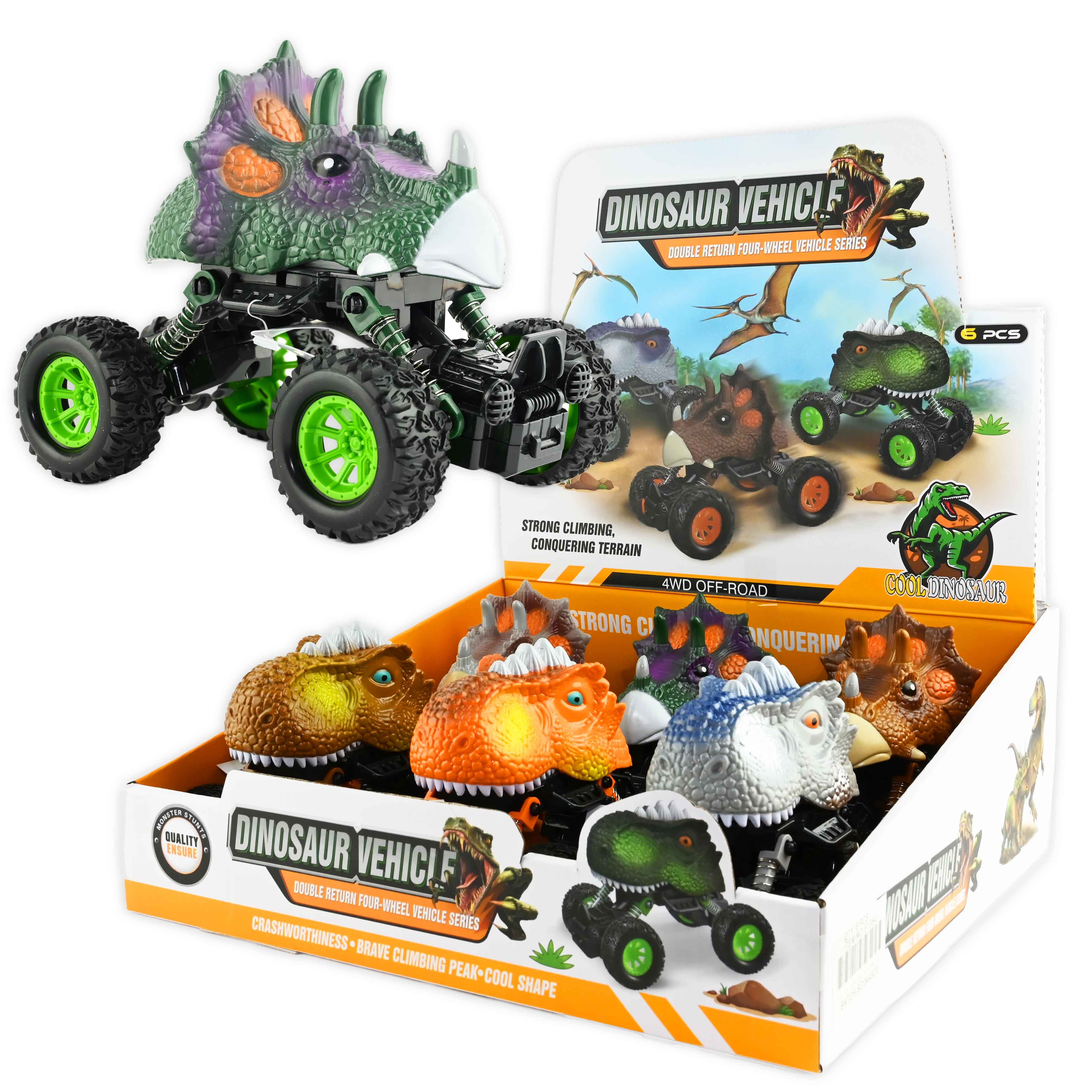 Denna spännande bil dinosaurie kombinerar två av barns favoritintressen i ett robust leksaksfordon. Med sin 4WD-terränggående förmåga kan ditt barn utforska okända landskap och leka ut äventyrliga berättelser. Leksaken stimulerar fantasin och koordinationen samtidigt som den introducerar mekaniska principer på ett lekfullt sätt.