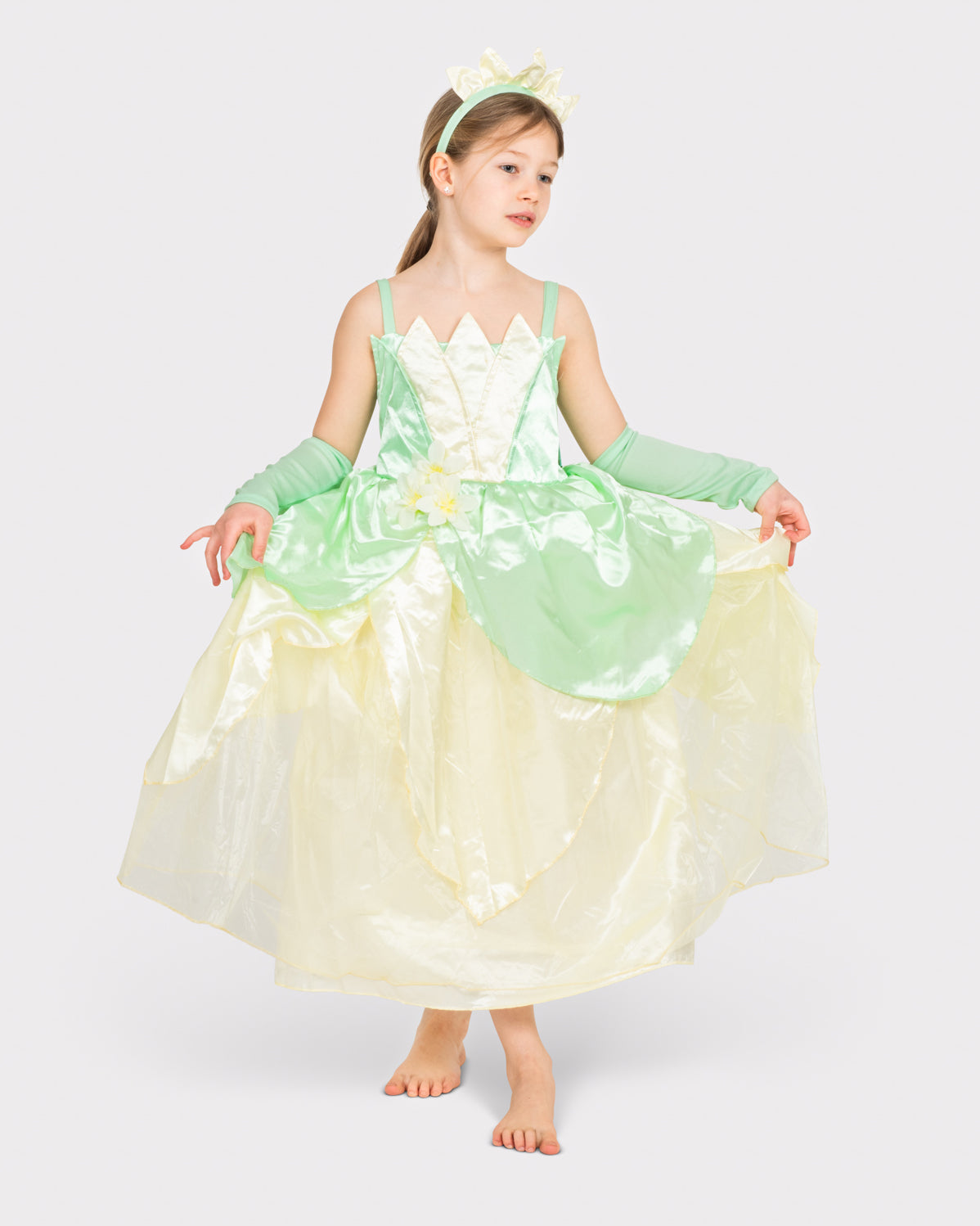 Prinsessklänning ljusgrön med tillbehör 122-128 cl 6-8 år