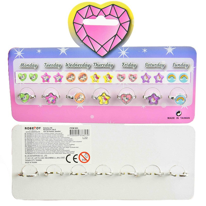 Ringset 7 dagar enhörning + öronklistermärken 7st