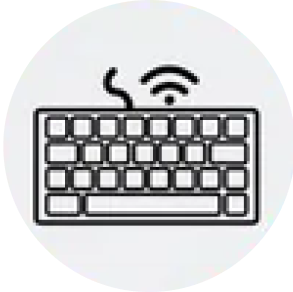 The Gem Keyboard connects seamlessly via Bluetooth or the included wireless USB dongle, providing flexible pairing options for desktops, laptops, and mobile devices.