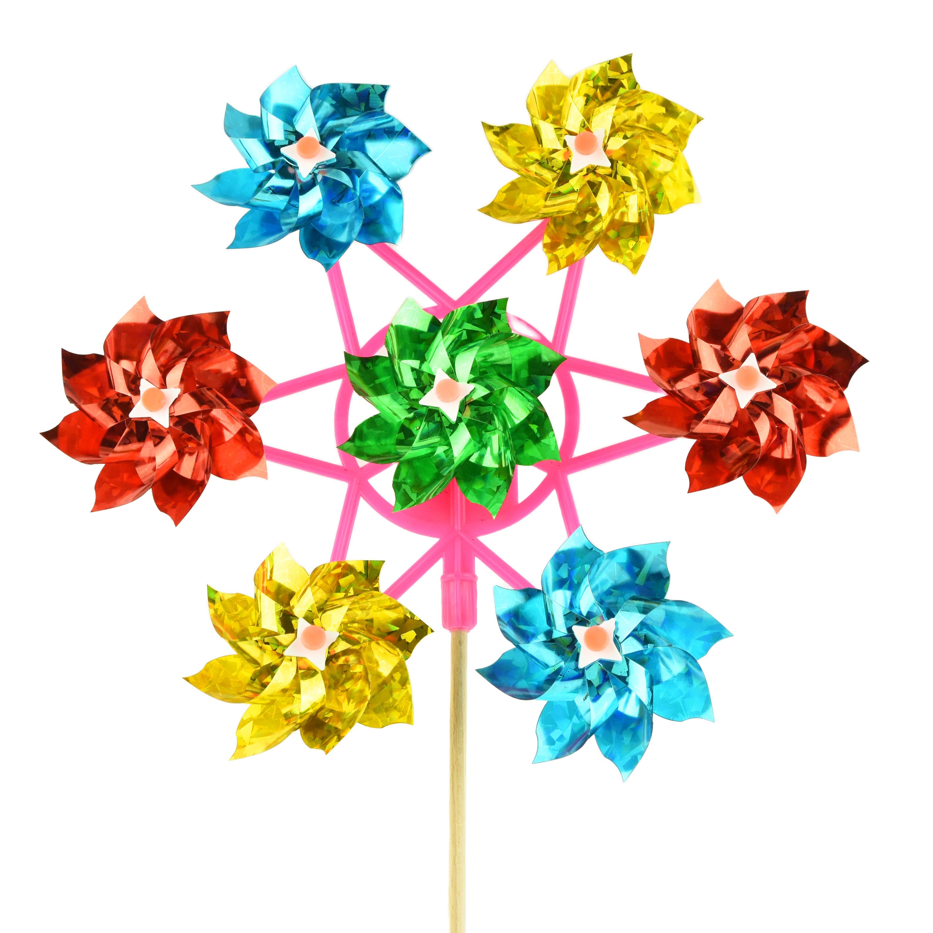 Vindkvarn 7 blommor trä 53cm